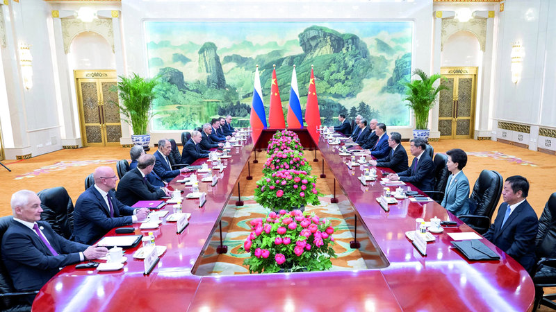في مارس من العام الماضي، توقف الزعيم الصيني شي جينبينغ عند باب الكرملين، وقبل أن يودع الرئيس الروسي فلاديمير بوتين، عرض عليه فكرة أخيرة، مستخدماً عبارة صينية تمثل ما تعتبره الصين تغييراً تاريخياً في النظام العالمي، قال شي: «دعونا نعززه معاً». وفي 16 مايو التقى الزعيمان للمرة الـ43، وعندها أصبحت روسيا شريكاً متزايد الأهمية في حملة الصين ضد القوة الأميركية. وأصبحت العلاقات الاقتصادية أقوى وبدت في الأفق دلائل على تعميق الروابط العسكرية. وهذا الشهر، شددت الولايات المتحدة مرتين العقوبات على التجارة الصينية الروسية، وردت حكومة شي بشدة، وحثت الغرب على «التوقف عن تشويه الصين».