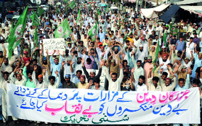 ونظمت احتجاجات غاضبة في لاهور ومدن وبلدات باكستانية مطالبة الحكومة بإجراءات أكثر صرامة ضد المتشددين المرتبطين بـ«طالبان» و«القاعدة».