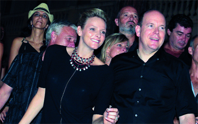 أمير موناكو ألبرت وخطيبته تشارلين وتسكوك في إحدى الحفلات. أ.ب