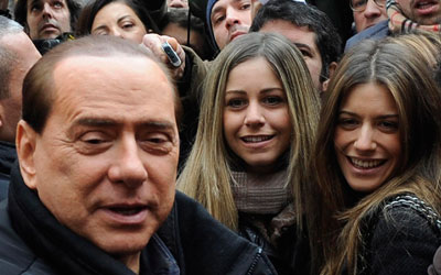 الفتيات متواجدات في أي ظهور عام لبرلسكوني في إيطاليا. إي بي أيه