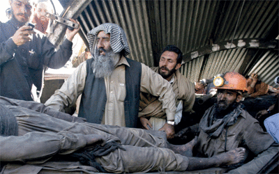 قتل 43 عاملاً إثر سلسلة انفجارات وقعت في منجم للفحم في منطقة بلوشستان جنوب غرب باكستان، بحسب حصيلة نهائية رسمية اعلنتها، أمس السلطات المحلية. وقال المفتش المحلي للمناجم محمد افتكار «لقد تم العثور على جميع الجثث وعددها 43»، معلناً في الوقت نفسه انتهاء عمليات الانقاذ. وأضاف «ليس هناك ناجون ووضعت اختام على مدخل المنجم»، الواقع في بلدة سورانج النائية. وتعرض المنجم اثناء وجود العمال فيه لثلاثة انفجارات الاحد الماضي. واعلنت السلطات سريعا ان الامل ضئيل في العثور على ناجين. واشار مسؤولون محليون الى ان الحادث ناجم عن سوء تهوية المنجم، ما ادى الى تراكم الغازات السامة، وبالتالي حدوث انفجارات. وغالبية المناجم معروفة بقلة احتياطات السلامة، وسوء نوعية التجهيزات، ووقعت حوادث مشابهة في الماضي.