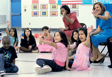 بعد الغداء تحدثت السيدتان الأوليان مع غراي وزوجته ايلين عن مشروع «الطباخ يأتي الى المدرسة».