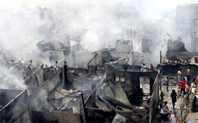 التهم حريق ضخم امس منطقة عشوائية في مدينة ماكاتي شرق العاصمة الفلبينية مانيلا، أدى إلى تشريد نحو 10 آلاف شخص على الأقل.
