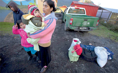 وأمرت الحكومة بإجلاء نحو 3500 شخص يقيمون في نحو 20 بلدة قريبة من البركان الواقع على بعد 870 كلم جنوب سانتياغو في مكان غير بعيد عن الحدود الارجنتينية.