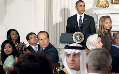 الأربعاء الماضي نظم الرئيس أوباما حفل إفطار بالبيت الأبيض بمناسبة شهر رمضان المبارك، دعا اليه القيادات المسلمة، ومن مختلف الأديان الأخرى، وفي كلمته بهذه المناسبة يقول «ينبغي ألا تكون اميركا فقط هي التي تمد يد التسامح إلى أناس من مختلف الأعراق والأديان، وإنما ايضا اميركا التي تثري تنوعنا وثقافتنا».