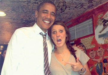 لم تكن الفتاة الأميركية العادية مادلين ستاركي التي تعمل في بار بكولورادو تعلم ان مجرد صورة عادية وتلقائية لها مع الرئيس الاميركي باراك اوباما ستنتشر عالمياً لتصبح خلال دقائق على مختلف مواقع الشبكة العنكبوتية، محققة لها شهرة كبيرة لم تكن تحلم بها. فقد توقف اوباما خلال جولته ضمن حملته الانتخابية في حانة بكولورادو، والتقى الزبائن الموجودين، وتبادل التحية واطراف الحديث معهم، والتقط هذه الصورة الضاحكة مع ستاركي الطالبة في جامعة كولورادو العاملة في البار، والتي لم تخف دهشتها.. ويبدو اوباما ضاحكاً، وقد لف ذراعه حول خصر الفتاة الحسناء التي أشارت اليه بإحدى اصابعها في علامة دهشة، كأنها تقول انها غير مصدقة ما يحدث.