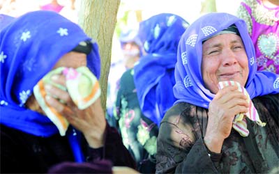 نساء قرية أكجاكالي خلال تشييع قتلى القذائف السورية. أ.ف.ب