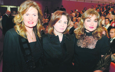من (اليمين) ليلى علـوي وإلهـــام شاهين ويسرا مع المحتجين في ميدان التحرير. أ.ف.ب