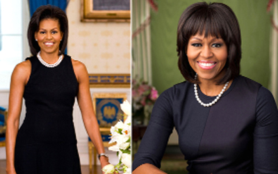 يوم الأربعاء الماضي اطلقت اوباما صورها الرسمية في البيت الابيض التي تعكس تسريحتها الجديدة، وفي احدى الصور تجلس السيدة الاولى على كرسي اخضر بفستان ازرق داكن بكم نصف طويل. وتختلف هذه الصورة عن صورتها الرسمية عام 2009، التي تبدو فيها واقفة في الغرفة الزرقاء في البيت الابيض مرتدية فستاناً من دون اكمام، وتظهر ذراعيها.