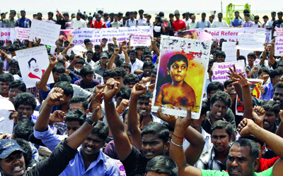 وشهدت مدن هندية عدة تظاهرات احتجاجية ضد موقف الهند «المتقاعس»، مطالبين بتحقيق دولي في «جرائم حرب»، ارتكبت إبان الصراع ضد متمردي التاميل في سريلانكا.