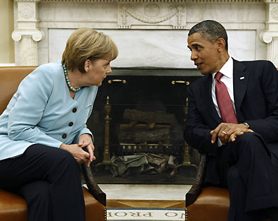 قال منظمو مزاد علني ألماني أنه سيتم طرح الكراسي الثلاثة التي جلس عليها كل من الرئيس الأميركي باراك أوباما، والمستشارة الألمانية أنجيلا ميركل، وعمدة برلين كلاوس فوفيرايت، خلال زيارة أوباما الأخيرة لألمانيا، للبيع في مزاد علني.