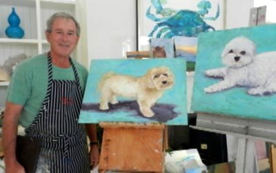 كشف الرئيس الأميركي السابق جورج بوش الابن، عن موهبة جديدة لديه، هي الرسم. وأفاد موقع «يو إس ماغازين» الأميركي، بأن بوش الابن أطل في مقابلة تلفزيونية مع الإعلامي، جاي لينو، وفاجأه بالكشف عن موهبة الرسم لديه. وأشار إلى انه بعد مغادرته البيت الأبيض عام 2009، قرر صقل بعض مهاراته الفنية، فاستخدم معلمة تعطيه دروساً في الرسم مرة واحدة أسبوعياً في دالاس. وكشف بوش عن رسوم عدة له، إحداها لـ«لينو»، بالإضافة إلى صورة لكلب أسود، وأخرى لقطة امام انعكاسها في مرآة. وشدد بوش، (67 سنة)، على انه يأخذ الرسم على محمل الجد «فقد غيّر حياتي». وكانت الفنانة بوني فلود، قد قدمت له دروساً حول مزج الألوان وضربات الفرشاة وغير ذلك من الدروس الفنية في الرسم. وقالت فلود، ان «43»، وهو اللقب الذي صارت تطلقه على الرئيس بوش، وهو الرئيس الـ43 لأميركا، «صار يوقع لوحاته بالرقم ذاته». وأوضحت أنه تعلق برسم الكلاب باعتبارها الموضوع الرئيس للوحاته. وأضافت أنها تعتقد أن الرئيس السابق رسم نحو 50 كلباً. وقالت إن بوش رسم كلبه السابق، الذي مات عندما كان في البيت الأبيض.