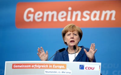 كلام ميركل، جاء خلال حضورها ندوة انتخابية، استعدادا لانتخابات البرلمان الأوروبي. إي بي إيه