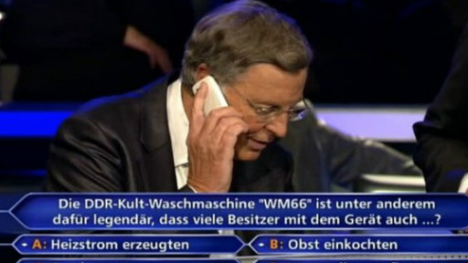 طلب صديق للمستشارة الالمانية انغيلا ميركل الاتصال بها خلال مشاركته بالبرنامج التلفيزوني "من سيربح المليون" التي خصصت للمشاهير آملاً بأن تجيب على سؤال في المسابقة ليربح مبلغ 500 الف يورو، إلا أنها لم تجب على المكالمة.