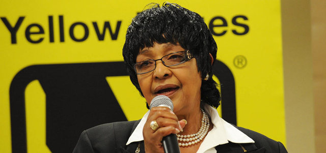 ويني مانديلا في مؤتمر صحافي. غيتي