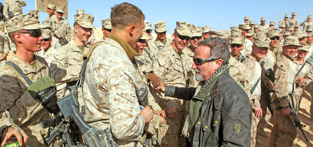 روبن وليامز زار مواقع القوات الأميركية وروى كثيراً من الطرائف والمواقف. أ.ب