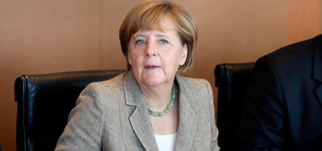 ميركل تعمل على مكتبها. أ.ب