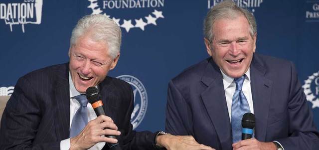 على الرغم من أن حزبي الرئيسين السابقين، بيل كلينتون وجورج دبليو بوش، لايزالان في حالة حرب على الدوام، إلا أن هذين السياسيين الأميركيين، ظهرا معاً قبل أيام أمام الجمهور، لإطلاق نظام قيادة جديد للشباب، حيث تحدثا مع بعضهما، وضحكا وسخرا من نفسيهما، والعالم من حولهما.