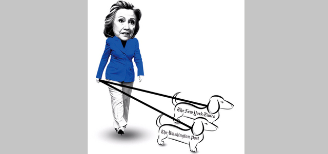 وبعد ذلك واصل تيد كروز، الذي يتصدر استطلاعات الرأي للناخبين الجمهوريين في أيوا، التي ستكون اول ولاية يجري التصويت فيها في الأول من فبراير، بنشر رسم على حسابه على «تويتر» لهيلاري كلينتون، تجر كلبين، كتب على واحد منهما، واشنطن بوست، والثاني، نيويورك تايمز.