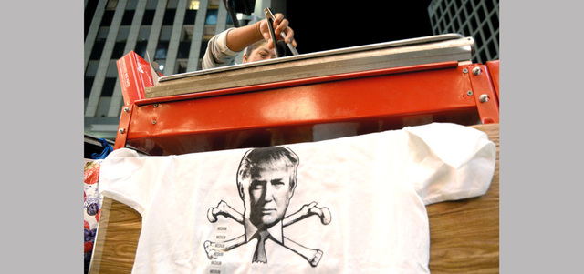 بائع نقانق على عربة يضع صورة ترمز الى ترامب المميت .غيتي