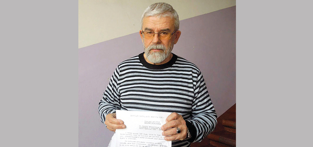 العجوز يوري يعرض أوراق الاختبارات التي تثبت أنه حفيد ستالين. أرشيفية