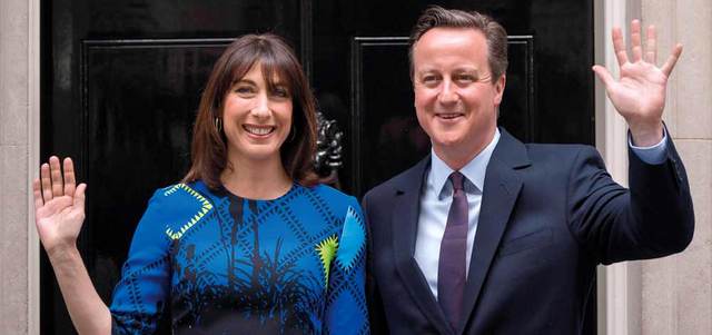 ديفيد كاميرون وزوجته يستعدان لمغادرة بيتهما الحكومي. أ.ف.ب