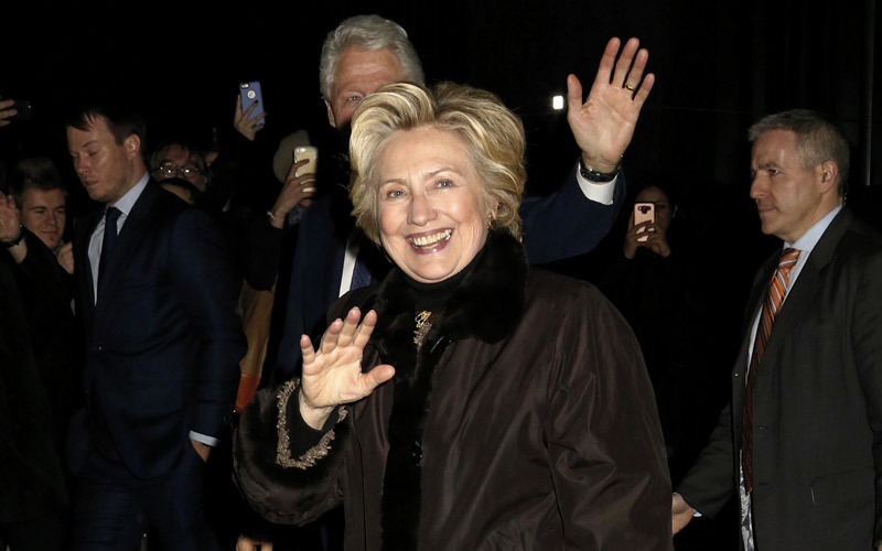 وعقب الانتخابات امتنعت كلينتون، إلى حد كبير، عن الإدلاء بأي تصريحات علنية، رغم تغريدها عبر موقع التواصل الاجتماعي «تويتر» دعماً للمسيرات النسائية التي أعقبت تنصيب ترامب، وأيضاً دعماً لأولئك الذين احتجوا على قراره التنفيذي بمنع مواطني سبع دول ذات أغلبية مسلمة من دخول الولايات المتحدة.