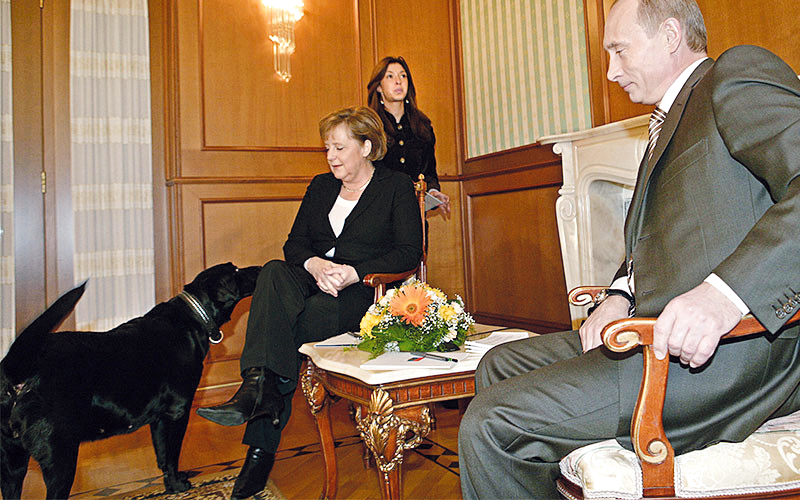 أواخر العام الماضي، اضطر بوتين لاستخدام كل ما لديه من مهارات لكبح جماح كلبته التي أحضرها معه خلال مقابلة صحافية مع صحافيَّين يابانيَّين. وبدا الفزع واضحاً على وجهَي الصحافيَّين اللذين حافظا على مسافة كبيرة من الكلبة، بعد أن رفضت «يومي»، وهذا اسمها، الانصياع لأوامر بوتين، واستمرت في نباحها خارقة جميع البروتوكولات والأعراف.