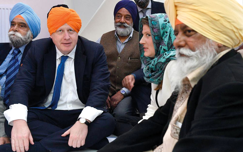 وكان جونسون في زيارة لمعبد للسيخ في مدينة بريستول البريطانية، في محاولة منه لحشد الناخبين لحزب المحافظين من هذه المدينة، التي تحوي أكبر جالية من السيخ في بريطانيا.