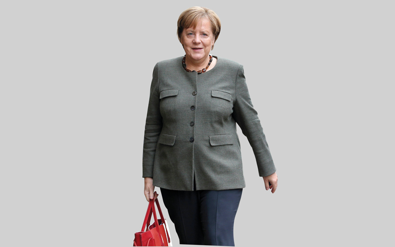 ميركل استطاعت تخطي تيريزا ماي التي حلت في المرتبة الثانية. أ.ب