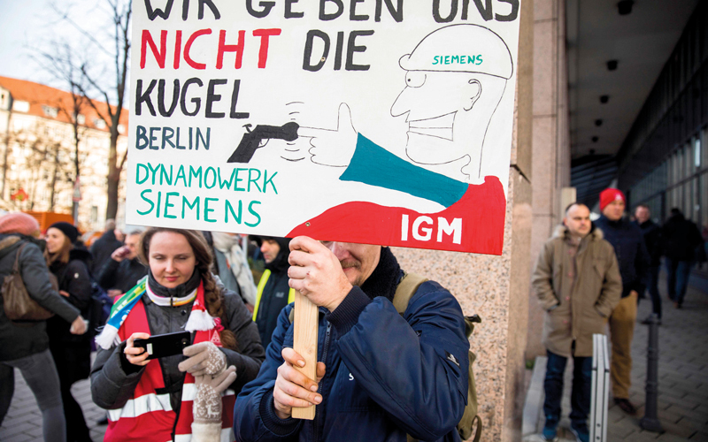 قطاع من عمال سيمنس يحتجون ضد خطة التسريح المقررة. ا.ب