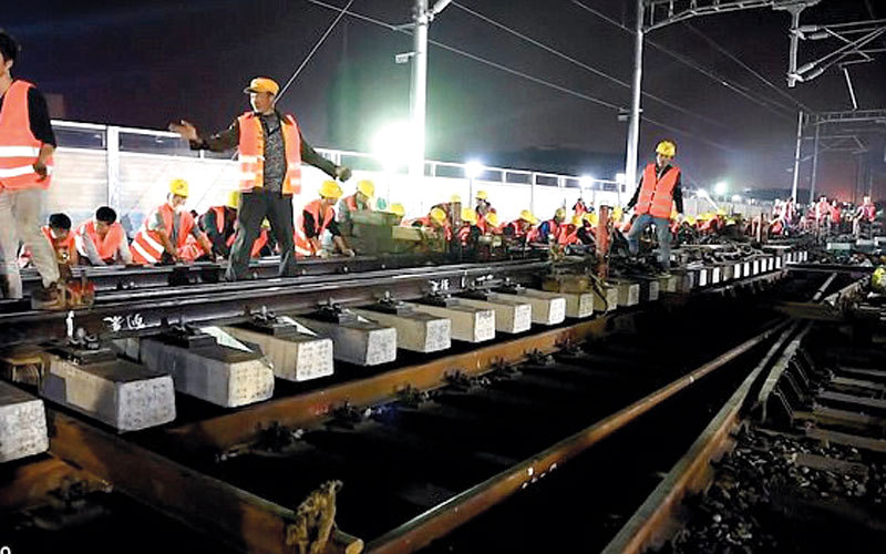 عمال صينيون يبنون خط سكة حديد في 9 ساعات فقط