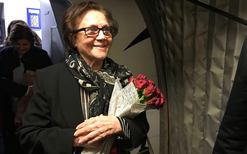 جميلة بوحيرد لدى استقبالها في مطار القاهرة. أرشيفية