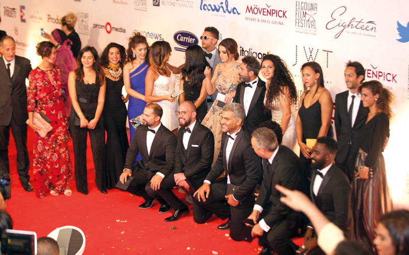 أبطال فيلم «الشيخ جاكسون» خلال مشاركة العمل في «مهرجان الجونة السينمائي». أرشيفية