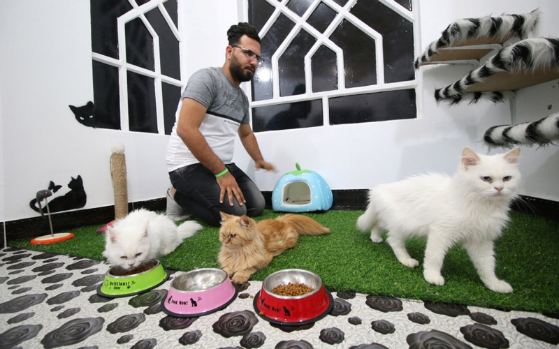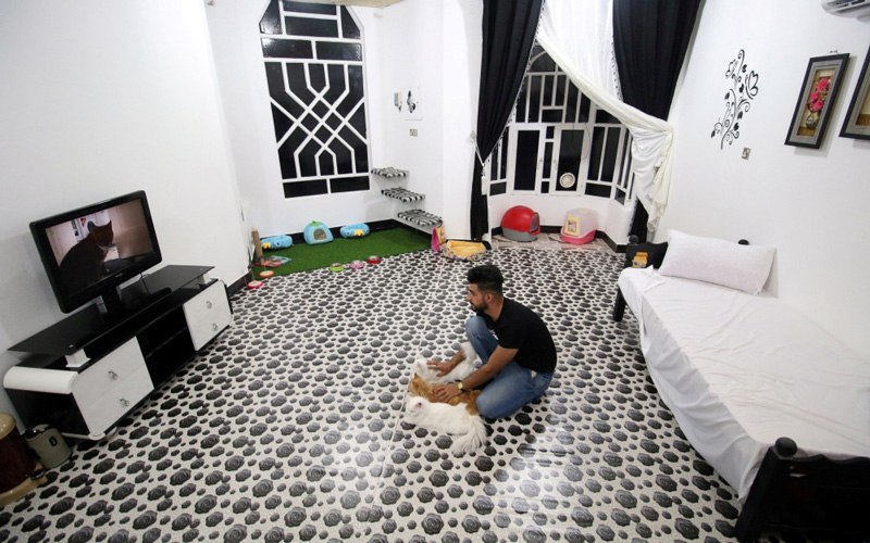 وحول طالب الطب البيطري أحمد طاهر مكي منزله في المدينة الواقعة بجنوب العراق إلى ما يعتقد أنه أول فندق للقطط في العراق.