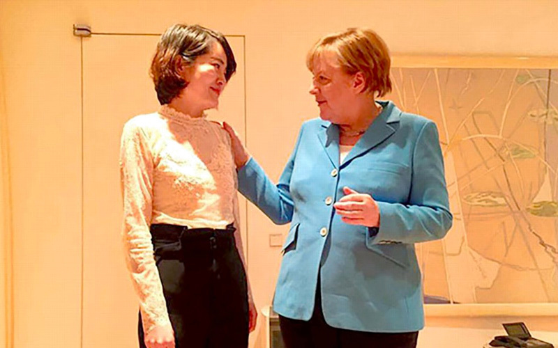 ميركل مع زوجة المعتقل. أرشيفية