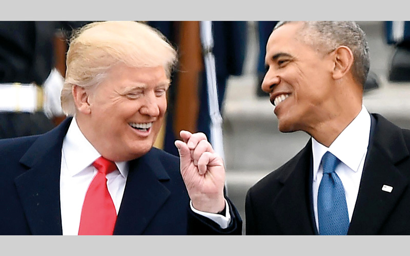 أوباما (إلى اليمين) قال بعد فوز ترامب: النجوم في السماء أكثر من حبيبات الرمل في الأرض. أرشيفية