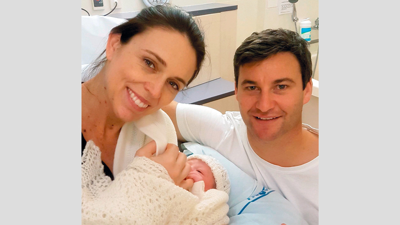 رئيسة وزراء نيوزيلندا مع زوجها وطفلتها. من المصدر