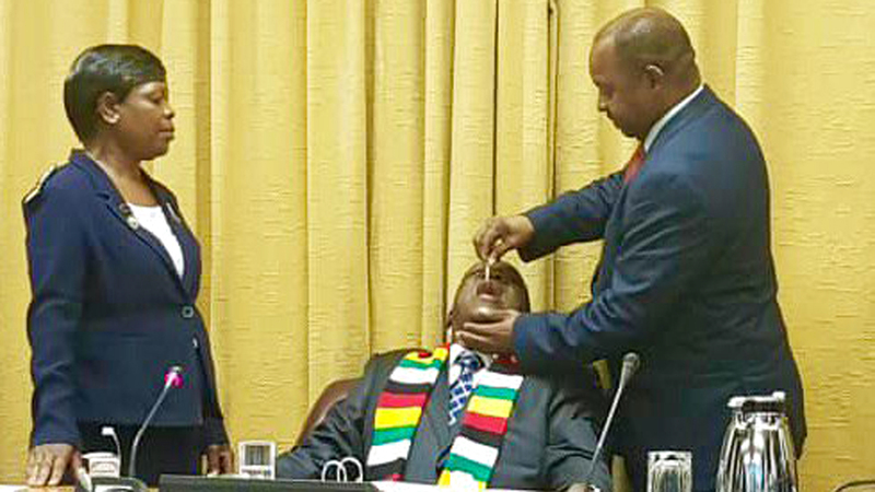 استشاط الزيمبابويون غضباً لدى رؤيتهم صورة الرئيس، إيمرسون منانجاجوا، وهو يتلقى اللقاح ضد الكوليرا في العاصمة هراري. وانتشرت على مواقع التواصل الاجتماعي تغريدة أطلقها منانجاجوا تقول: «ليس هناك غضاضة في تلقّي لقاح الكوليرا، حتى خلال اجتماع مجلس الوزراء، لقد شرعنا في حملة تطعيم للمساعدة في حماية مجتمعاتنا من هذا الوباء، ونحن نشجع ذلك في المناطق ذات الكثافة السكانية العالية».