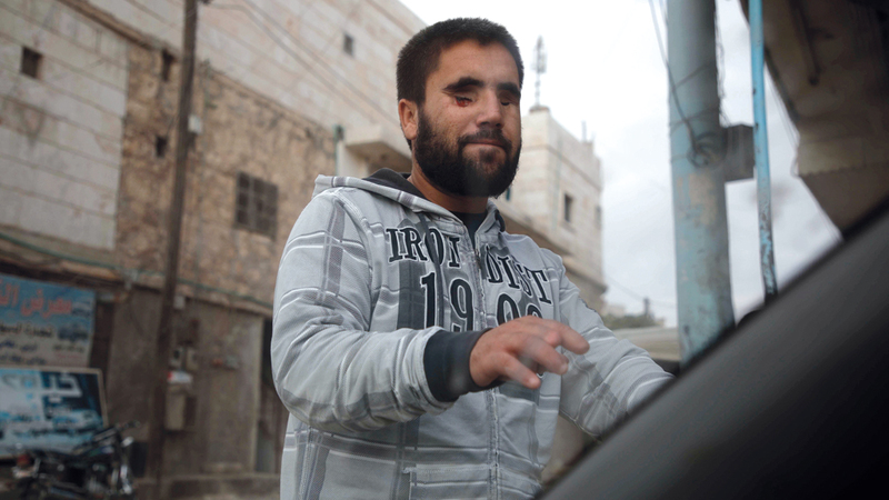 في العام اللاحق، انضم هذا الشاب الى صفوف فصيل معارض خاض اشتباكات طويلة ضد قوات النظام في مدينة حلب. وبعد عامين، تسببت طلقة كلاشينكوف دخلت رأسه خلال المعارك بفقدان بصره.