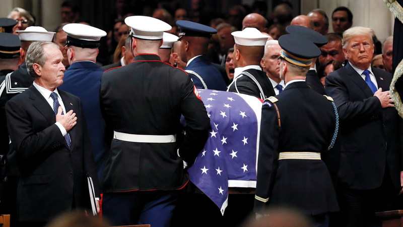 ترامب أثناء جنازة بوش الأب. إي.بي.إيه