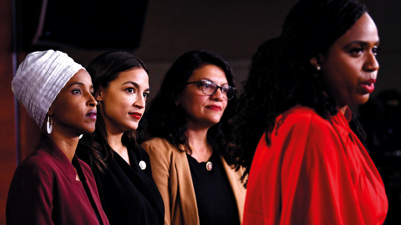 عضوات الكونغرس اللاتي تعرضن لعبارات ترامب العنصرية يعقدن مؤتمراً صحافياً. أ.ف.ب
