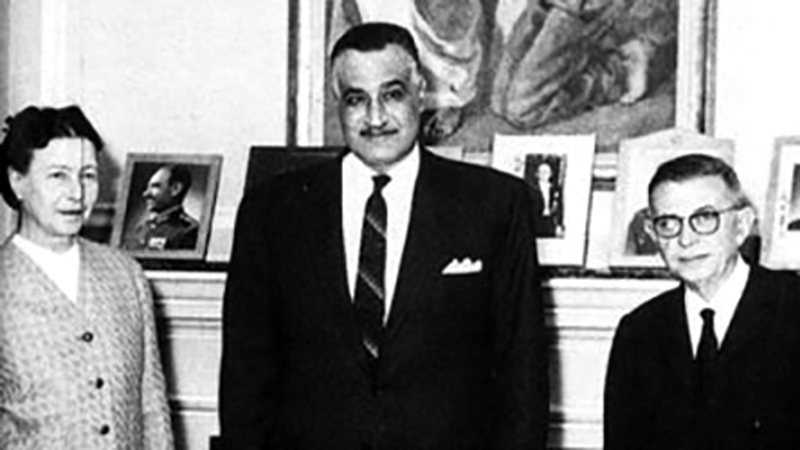 - موقف سارتر وسيمون بوفوار المهاجم لعبدالناصر مثير للاندهاش، فقد استقبلتهما مصر الناصرية بأذرع مفتوحة، واعتبرت مصر سارتر فيلسوف التغيير الثوري في العالم وقتها.