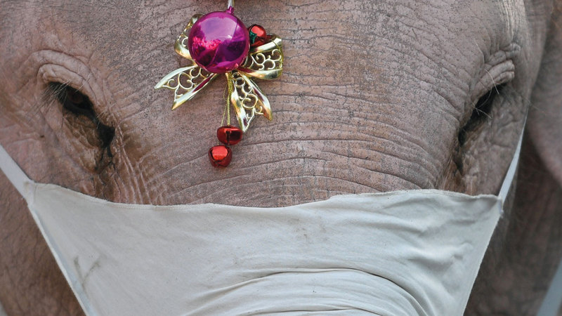 جالت أربعة فيلة متنكّرة بزيّ سانتا كلوز مع كمّامات عملاقة بحكم وباء «كوفيد-19»، أمس، في مدرسة في تايلاند ضمن مسيرة تُقام كلّ سنة بمناسبة عيد الميلاد. وأنشد أطفال مدرسة «جيراسات ويتايا» في أيوتايا على بعد ساعة من بانكوك أغنيات عيد الميلاد واصطفوا في الطابور لالتقاط صور إلى جانب الفيلة. وحمل كلّ من (سري مونغكون - 14 عاماً) و(سري رايا - ستة أعوام) و(بيتر - 15 عاماً) و(كينغ كاوي - 18 عاماً) بواسطة خراطيمها سلّة فيها كمّامات طبية وزّعت على التلاميذ والأهل خارج المدرسة. ويقضي الهدف من هذه المسيرة في نظر بريت باكستر، مدرّس الإنجليزية والعلوم، بإحياء أجواء الميلاد بنكهة تايلاندية. وهو يقول: «إنه لأمر رائع بالفعل للأولاد يزاوج بين ثقافتين، فمن جهة عيد الميلاد وسانتا كلوز الذي يجلب الفرح ومن جهة أخرى الثقافة التايلاندية القائمة على الفيلة». وتعدّ أيوتايا، العاصمة السابقة لمملكة سيام، مركز المسيحيين في تايلاند. وقد شيّدت فيها الإرساليات الكاثوليكية الأوروبية كنيسة على ضفاف نهر تشاو برايا قبل ثلاثة قرون.