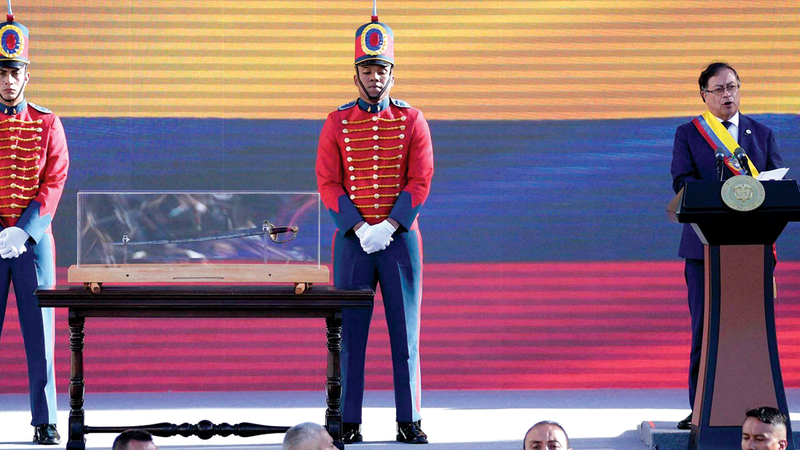 الرئيس غوستافو بيترو وإلى يمينه سيف بوليفار. أرشيفية