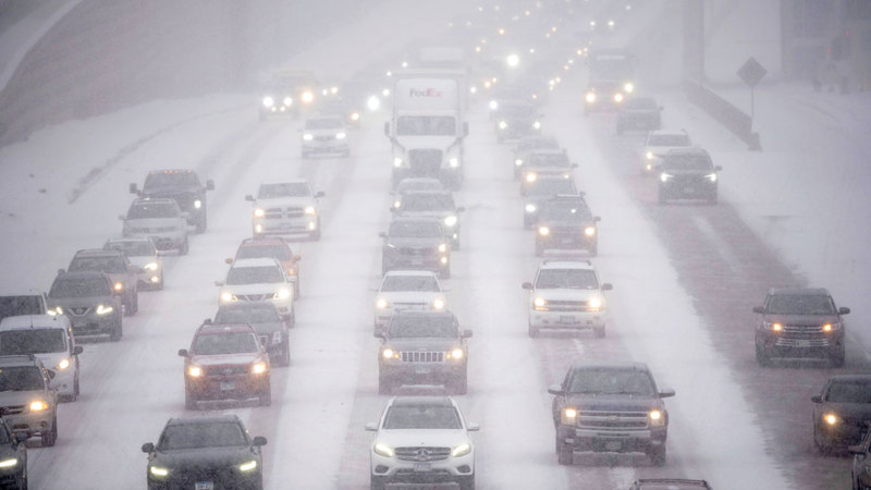 وحث مسؤولو المرور في مينيسوتا، ونبراسكا، وساوث ونورث داكوتا، سائقي السيارات على القيادة ببطء، أو الابتعاد عن الطرق تماماً خلال اليومين المقبلين.