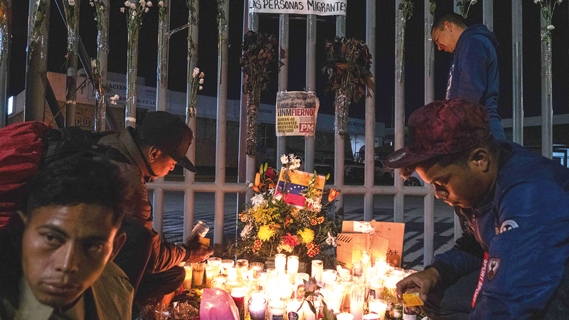 قضى 40 مهاجراً على الأقل في حريق شبّ أول من أمس في مركز لتوقيف المهاجرين في مدينة سيوداد خواريس في شمال المكسيك عند الحدود مع الولايات المتحدة، في مأساة تسبّب بها مهاجرون يخشون الترحيل، بحسب الحكومة المكسيكية.