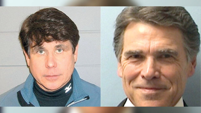 وفي 2008، بدا حاكم إلينوي الديمقراطي، رود بلاغوجيفيتش، مضطرباً، في صورة المشتبه فيه، وكان يرتدي بدلة الركض الزرقاء، وشعره الأسود الشهير كان أقل تشوشاً من المعتاد، حيث كان يحدق في الكاميرا بعد وقت قصير من ظهور العملاء الفيدراليين في الساعة السادسة صباحاً لاعتقاله. وأدين في قضية محاولة بيع مقعد شاغر في مجلس النواب الأميركي، وحكم عليه بالسجن 14 عاماً، قضى منها ثماني سنوات وراء القضبان.