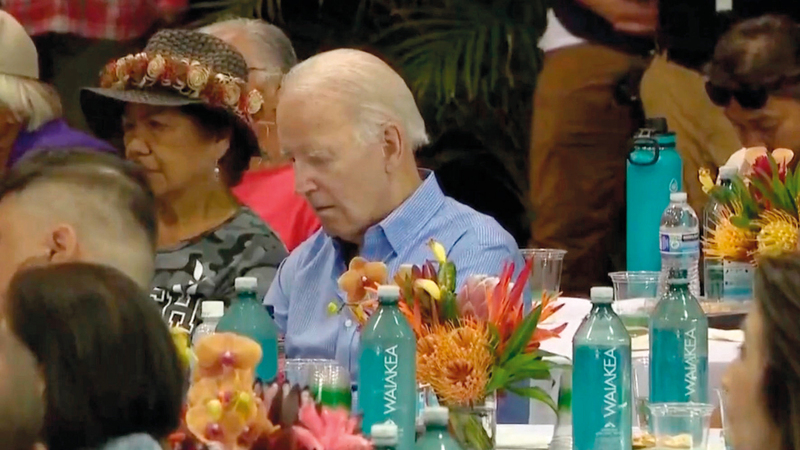 بايدن يغفو خلال مراسم تكريم ضحايا جزيرة ماوي