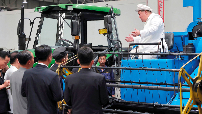 كيم يقود جراراً زراعياً. أ.ف.ب